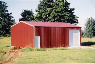 This months’ special comes with all of the engineering (25# snow, 98 wind and “C” exposure as quoted), framing lumber (MSR, Kiln dried) pressure treated posts, metal building insulation in roof, PAINTED steel on roof, walls and trim, screws, nails and one steel entry door and one 10’x10’ overhead door!